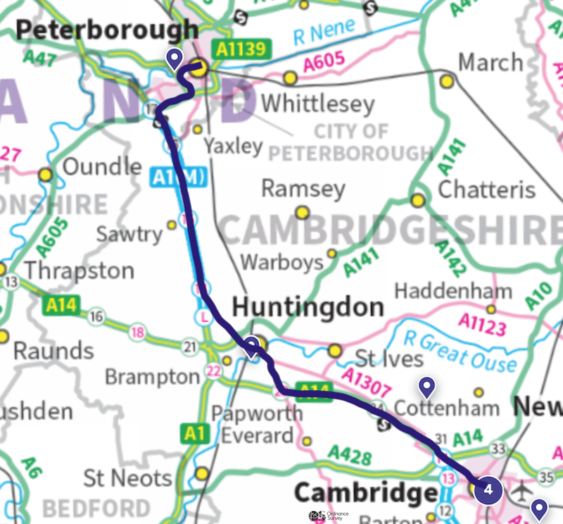 We left spot on time at 12:05 making our way out of the city towards the A14 which we joined 15 minutes later…