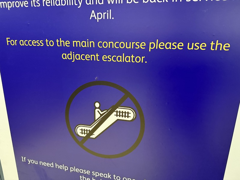 And the sign states wrongly to “please use the adjacent escalator”. But as you can see, there isn’t one!