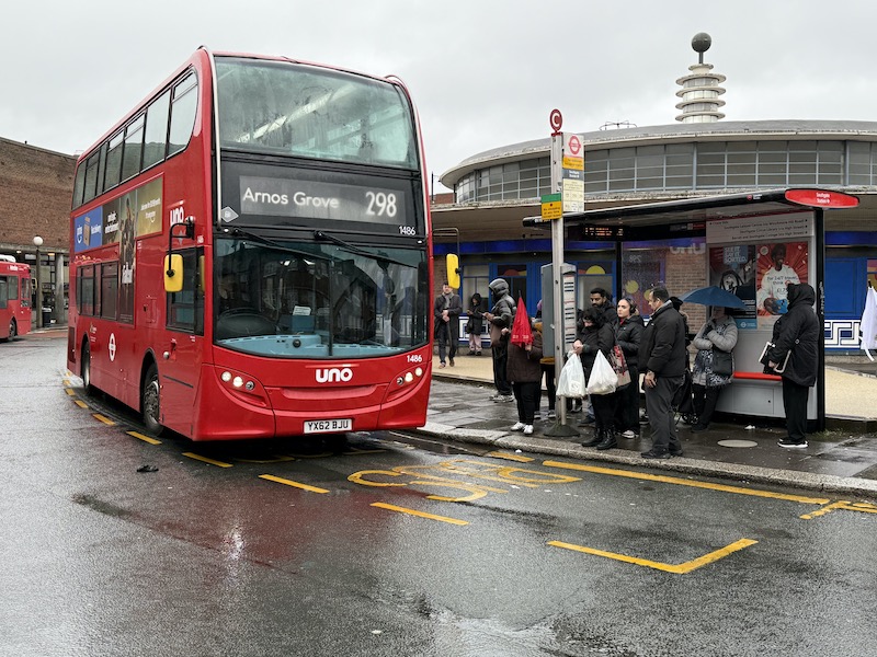 I recently made a journey from Southgate into central London and chose the 298 option as it was the first bus to arrive. As you can see about a dozen passengers boarded with more also picked up along the route all heading to Arnos Grove, where we all alighted to make our way to the platforms.