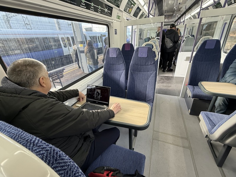 This one train, 230001, has been refitted internally as per the original concept begun by Vivarail before it went into Administration in December 2022 and led to electric versions of the former District line trains in service with South Western Railway on the Isle of Wight and diesel versions running with Transport for Wales and previously with London Northwestern in Bedfordshire.