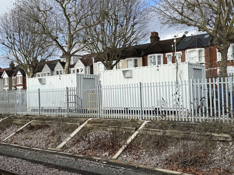 These are connected to the fast charging rails where there are sensors to pick up when a train has arrived so the process of charging can automatically begin, cutting out when the driver puts the power back on in the train to drive away. The train stands in West Ealing for three to four minutes between journeys, but this is long enough to keep the batteries on the train topped up. The track side batteries in the containers replenish from the grid in between times too.