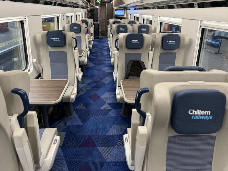 These ‘nearly new’ coaches provide a much welcome step up in comfort and ambience compared to Chiltern’s almost fifty year-old Mark 3 carriages they’re replacing.