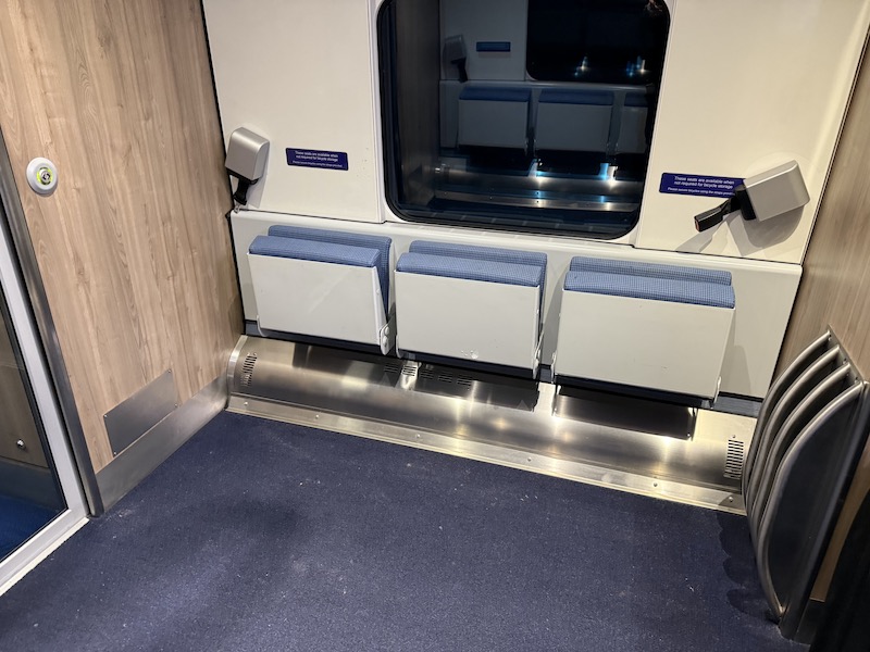 Coach B has dedicated spaces either side of the gangway for cycles with three tip up seats too.
