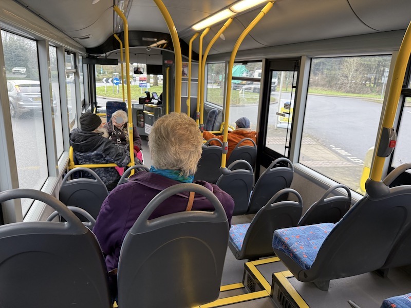 That sensible arrangement was brought to an end by the county council’s consultants when the favoured Book-A-Bus DRT scheme began in Summer 2023. Instead of phoning the operator, Compass Bus, who’d arrange for the bus to divert off the fixed route on a couple of journeys when needed, passengers now have to either use the Book-A-Bus app to book a journey on the segregated 99 Flex route or ring the central call centre that deals with all Pingo’s DRT operations.