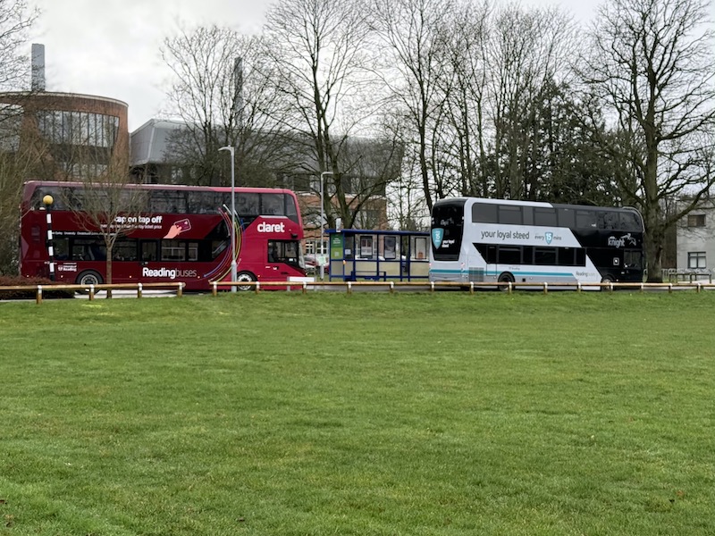 … thinking they were old buses and there must have been a last minute problem preventing introduction of the new fleet but then the penny dropped … they all have RGxxZEB cherished registration plates to indicate the tie up between Reading Buses and Zenobe.
