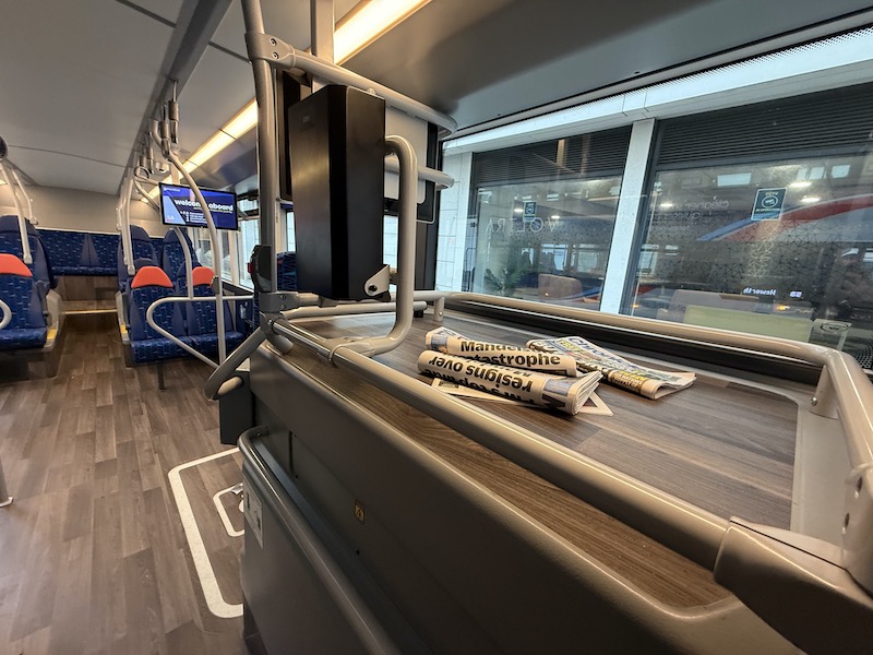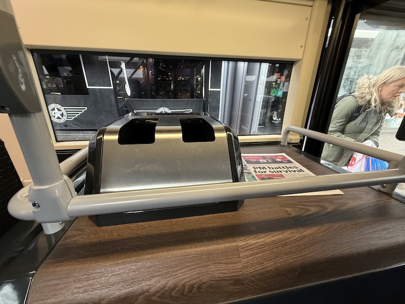As in Reading’s buses there isn’t yet a holder for the Metro newspapers and there’s a more standard litter bin than the toaster variety.