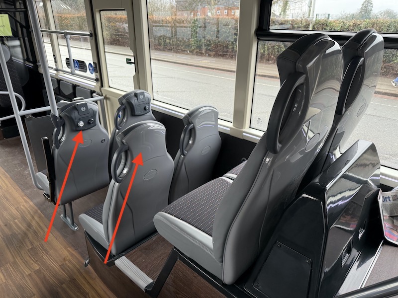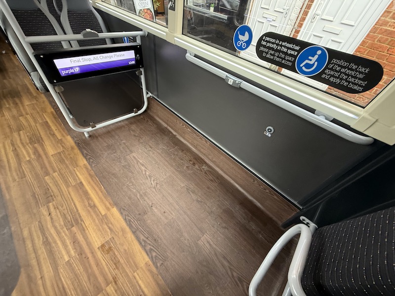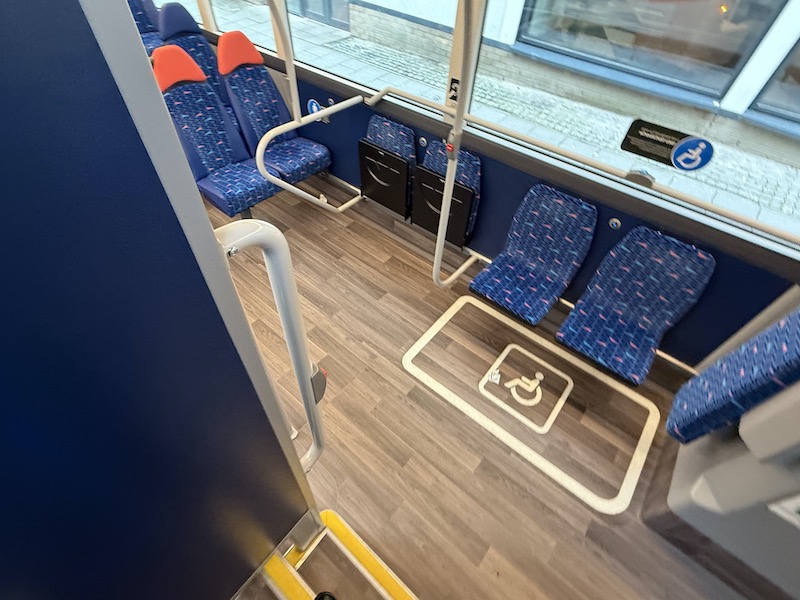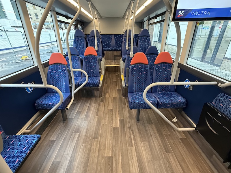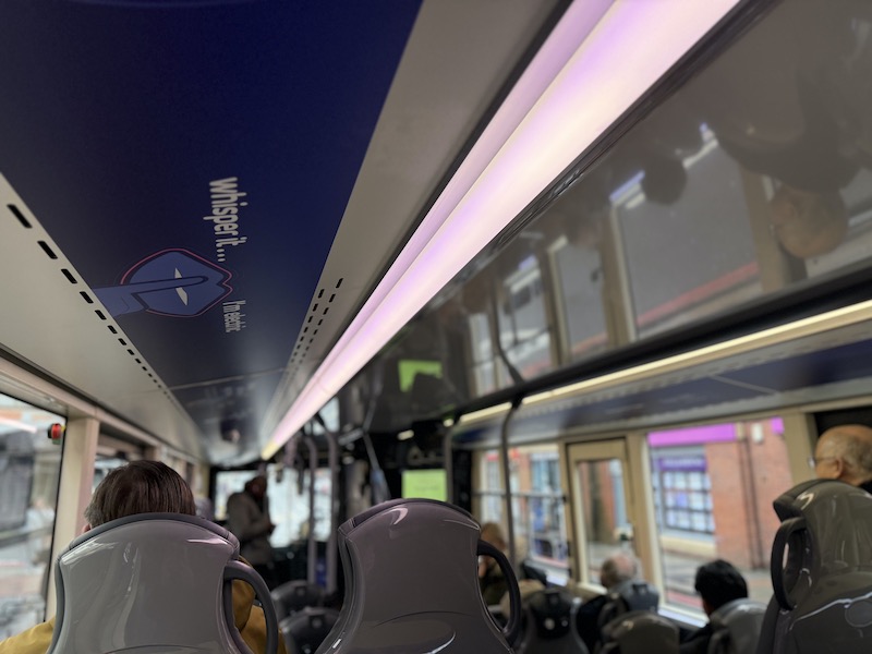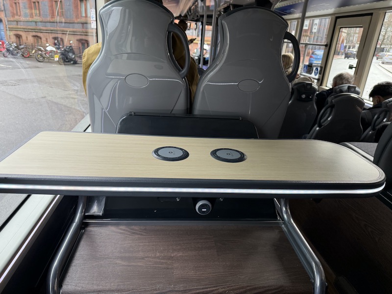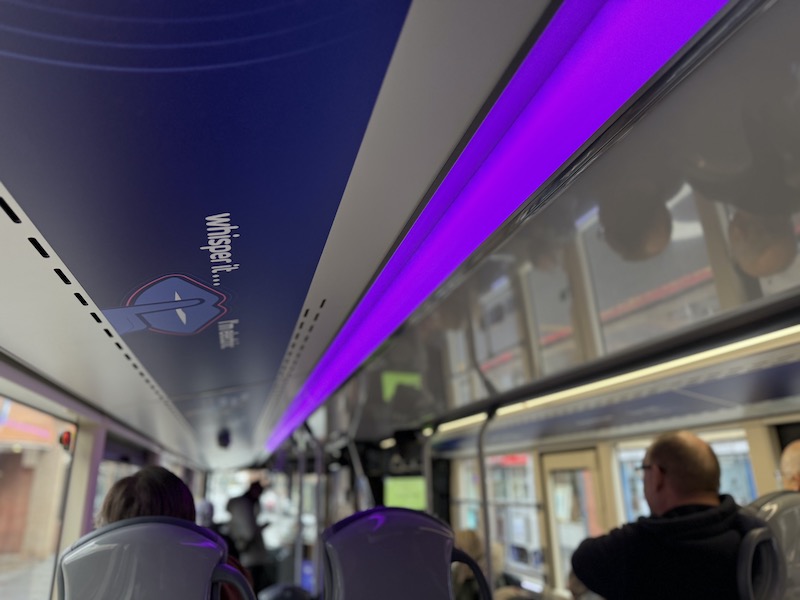 The seats themselves are comfortable, as is the leg room, but I prefer Reading’s more subtle grey based moquette. Also, there are no wireless charging holders on the rears of the seat backs but there are usb and bell pushes.