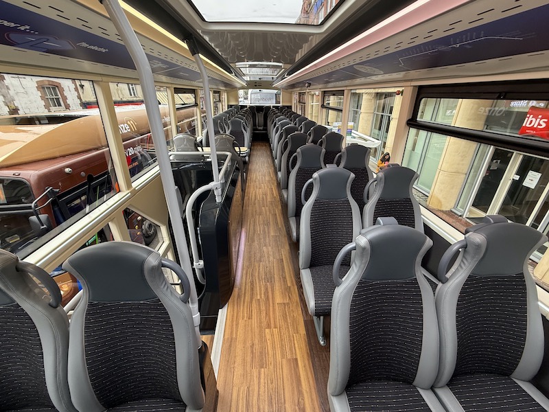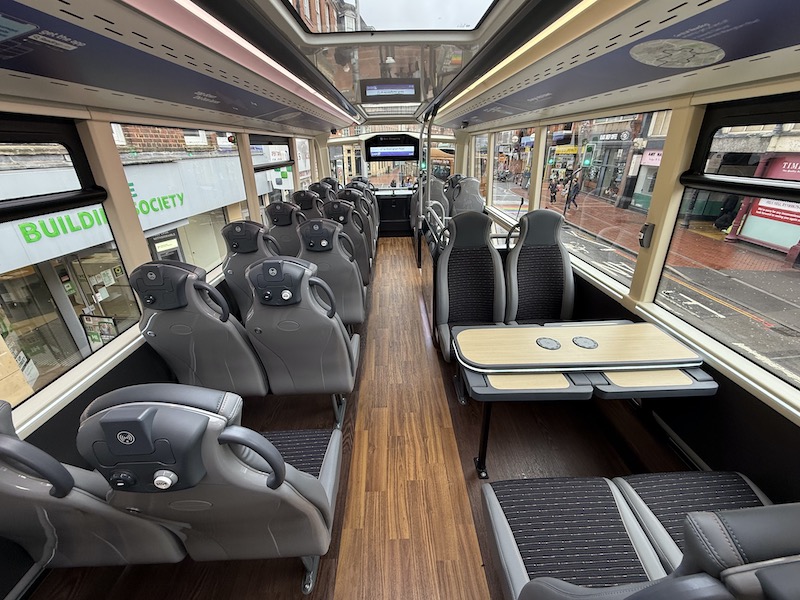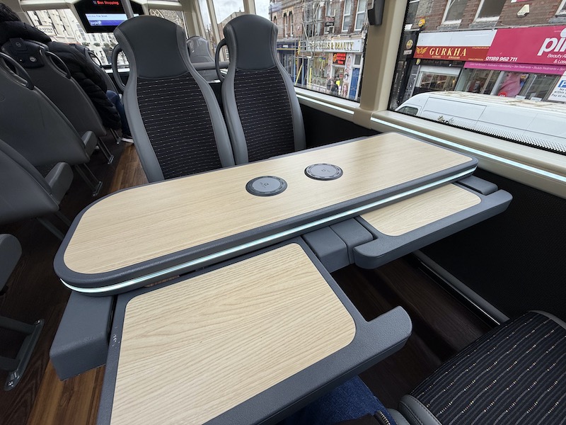 The interiors are smart but don’t come with the same refinements as in Reading. For example, a more traditional seat layout at the rear of the lower deck has a seat pair instead of the bench table over the read wheel…