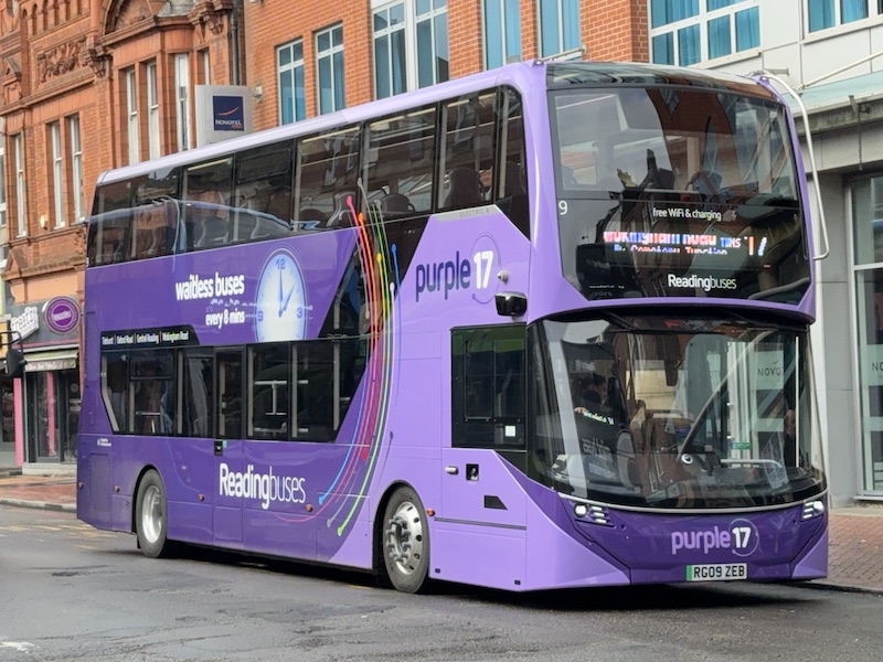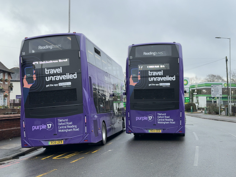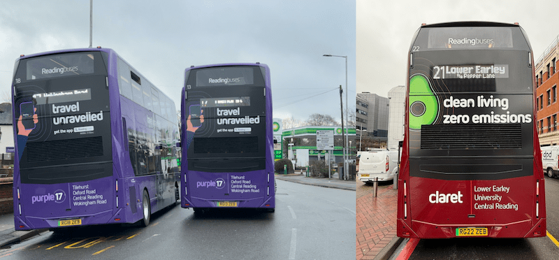 These first 24 smart new buses are operating on Reading’s busy long standing purple branded cross town route 17 between Tilehurst Three Tuns and Wokingham Road and claret branded route 21 serving the University campus at Whiteknights and Lower Early.