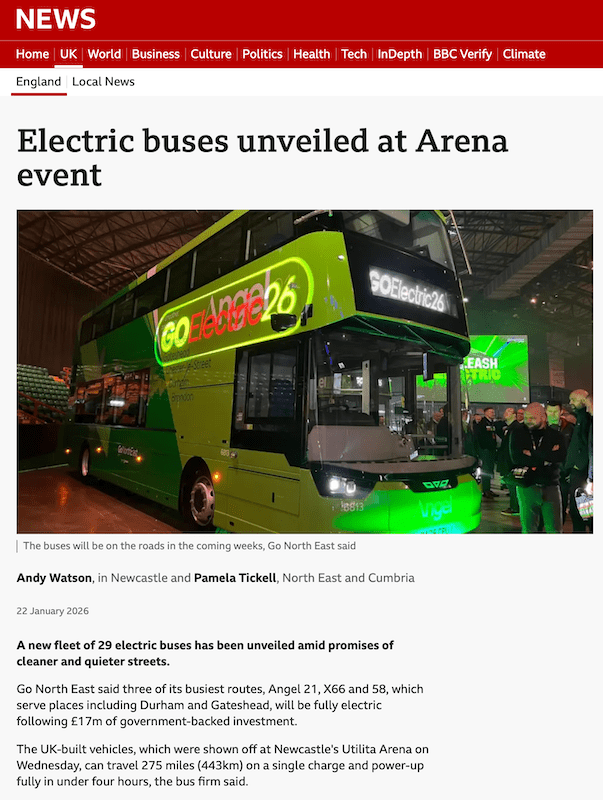 As in Reading, it’s good to see more new electric buses hitting the streets for passengers in the North East.