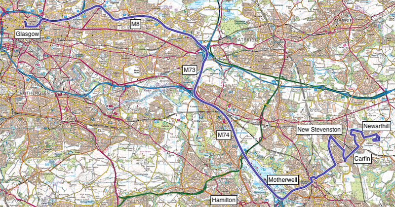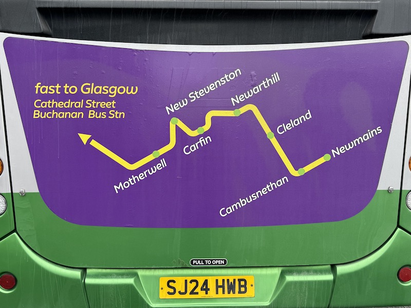 Readers may recall my post in February last year when I enjoyed a journey on JMB Travel’s fledgling route X1 providing a new fast link from Hillhouse and Hamilton into Glasgow using the M74/M73/M8. Well, they’ve done it again – introducing a second new route providing a quick “Glasgow fast” journey time using the same motorway connections.