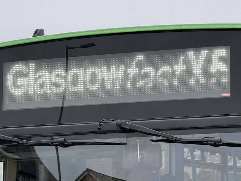 The bus carries the same ‘Glasgow fast’ branding as developed for the X1 which will help raise the profile as since its introduction just over a year ago, that route has seen a frequency uplift with a half hourly frequency for much of the day as well as a Sunday service and I reckon it won’t be long before the X5 will be up for similar expansion.