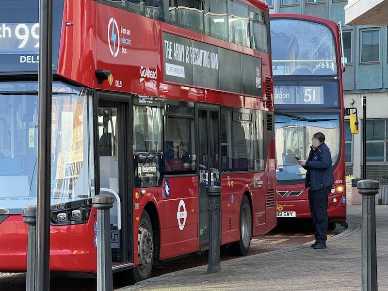 But the omens were not looking good. The bus was due away at 11:36 but I could see the driver having intense discussions on his mobile phone and every so often wandering to the back of the bus to look at the nearside tyre. Buses on route 51 came and went on their long trek south to Orpington, even a bus on the 20 minutely route 386 headed off to Blackheath, but still the 99 was showing no sign of life.