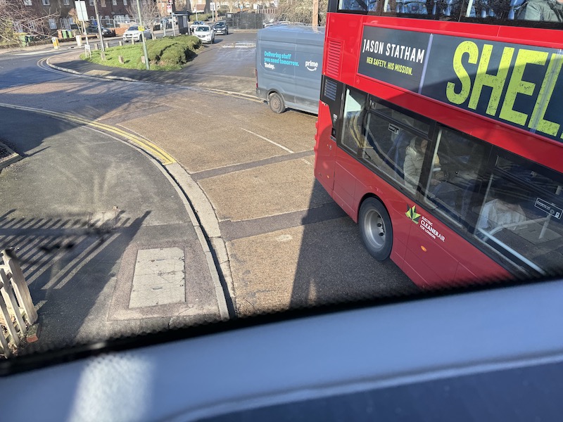 After that came more challenging driving along roads with width restricting on street parking as we’re briefly joined by buses on route 428…