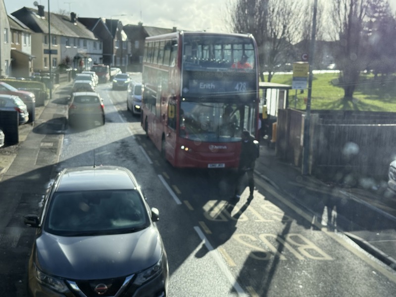 And it’s not long before the setting down point for terminating buses in Bexleyheath town centre comes into view and the 13 passengers who’ve joined us since Erith alight, as do I.