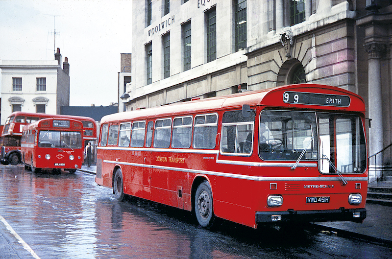 And that’s London’s route 99. But finally, for nostalgia, here’s a photo of one of the more unusual vehicle types, a single deck Metro Scania prototype, that operated for a trial on the service in April 1970 reproduced here with many thanks to Martin Curtis.