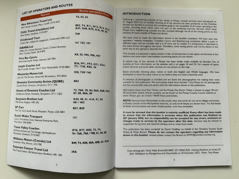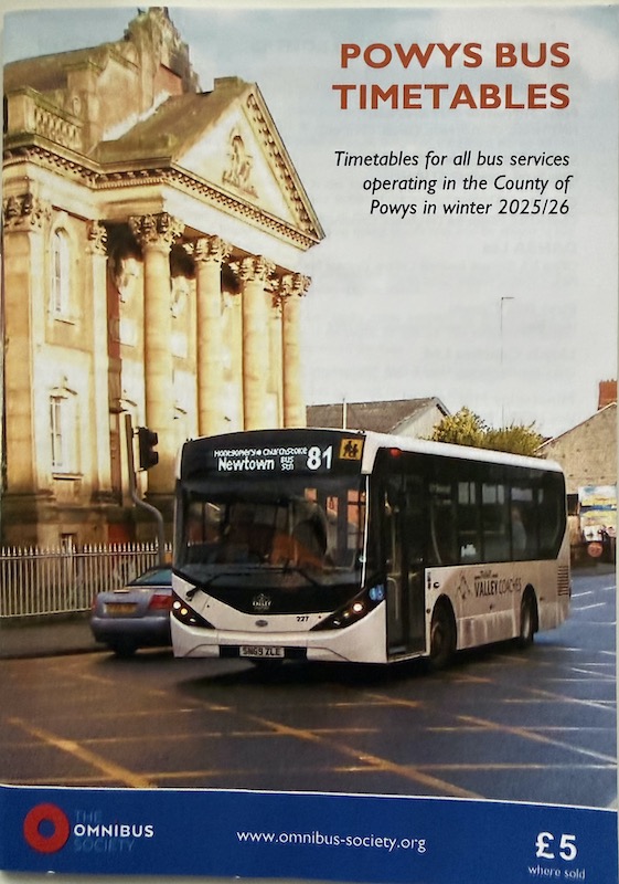 It comes to something when passengers wanting a bus timetable book showing all the bus routes operating across a county have to turn to the Omnibus Society to find out what runs when and where in a printed format. But that’s exactly what’s happened in Powys where the South Wales and West Branch of the Omnibus Society has taken the much welcome and commendable initiative of commercially producing a fully comprehensive countywide timetable book detailing every bus route – including those with just a part section of route in the county – and an easy to follow countywide bus map.