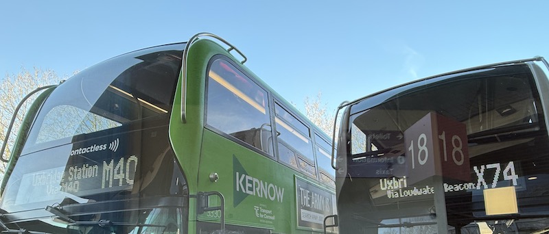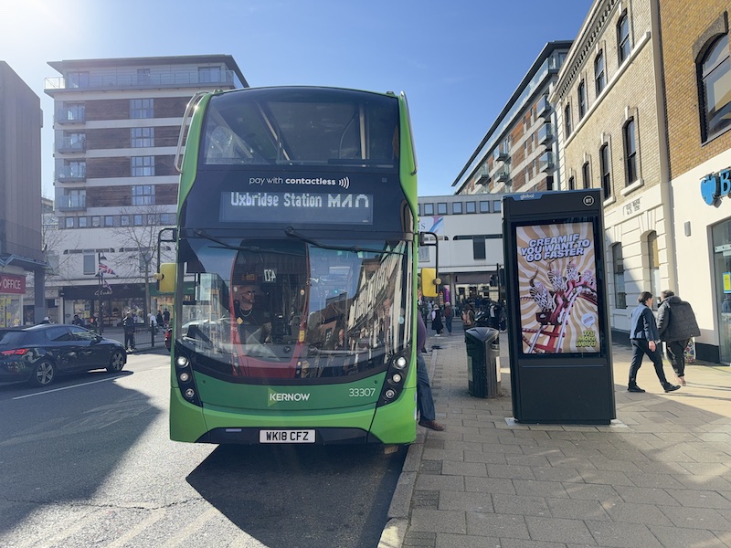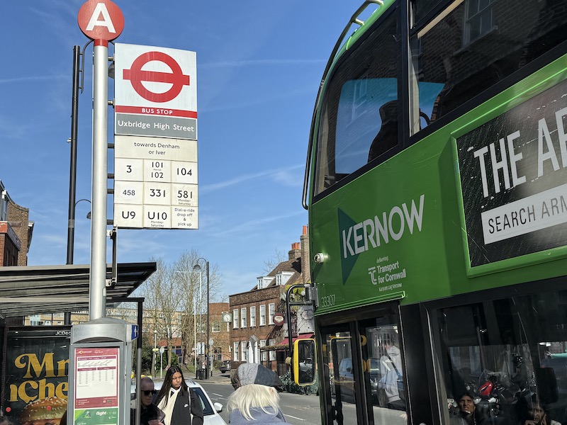 Now I’m sure people at First will say, there wasn’t time to get the buses repainted, well, in that case, why not delay introducing the new routes until they’ve been painted? Why waste all the potential marketing collateral for a new route launch running buses promoting Transport for Cornwall …. with external adverts for Open Events at Plymouth and Truro colleges …. in Uxbridge amid a sea of London’s red buses? It’s incongruous and confusing.