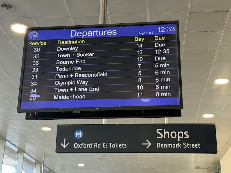 … and while I was in High Wycombe bus station someone (I’m guessing from Carousel) was updating the displays at the departure stands…
