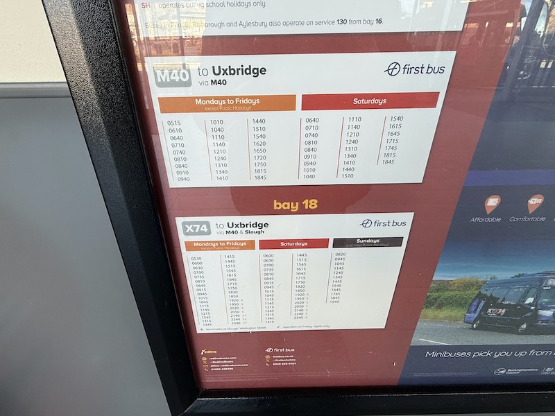… and the timetables on the back walls had had both the M40 and X74 added.