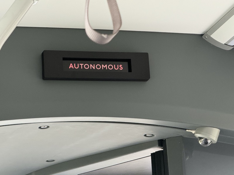 And, sure enough, she was right, for as she drove out of the site a buzzer sounded and the light came on above the bulkhead indicating to passengers on board the bus was now in autonomous mode.