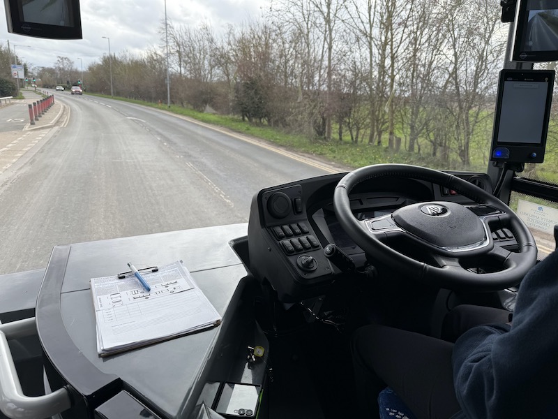 One of four drivers who have received special training in how to handle an autonomous bus operates this on a rota as well as other standard bus driving work. But, of course, it’s a completely different driving approach needed with an autonomous bus. In essence it’s a ‘hands off’ approach but to always be ready at any time to take over the driving, either by hands going back on to the steering wheel or a foot touching the brake or accelerator. In such circumstances the autonomous mode immediately cuts out.