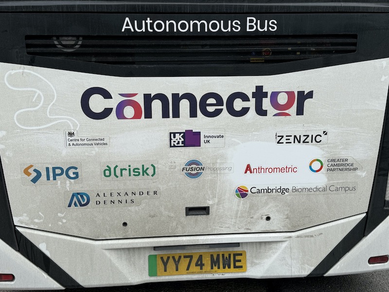 The two trials in Cambridge are being overseen by the Greater Cambridge Partnership and go under a Connector branding with funding from the Centre for Connected and Autonomous Vehicles – a joint unit of the Department for Transport and Department for Business and Trade. Fusion Processing is masterminding the technology with Whippet providing the drivers as well as looking after the three buses which have been supplied by ADL. There’s also a Mellor bodied Fiat used on the West Cambridge trial which was used on the original trial in Didcot in 2023 operated by First Bus.