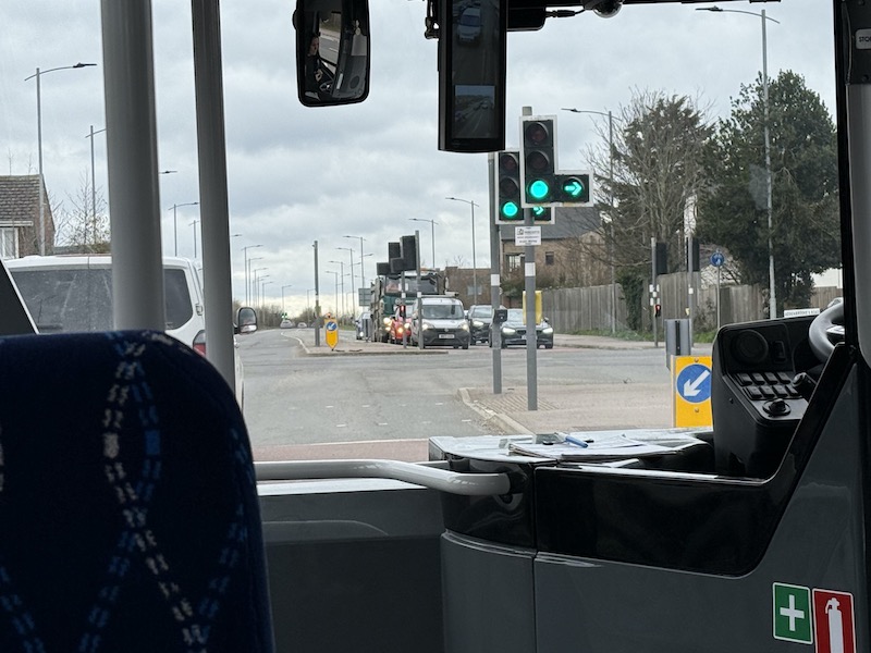 2. I like that novel approach to roundaouts. Many of the drivers on the X5 Oxford-Bedford sit and wait at roundabouts while non-conflicting traffic sails into the exit we are joining from. Maybe the robot bus could be used to train them?