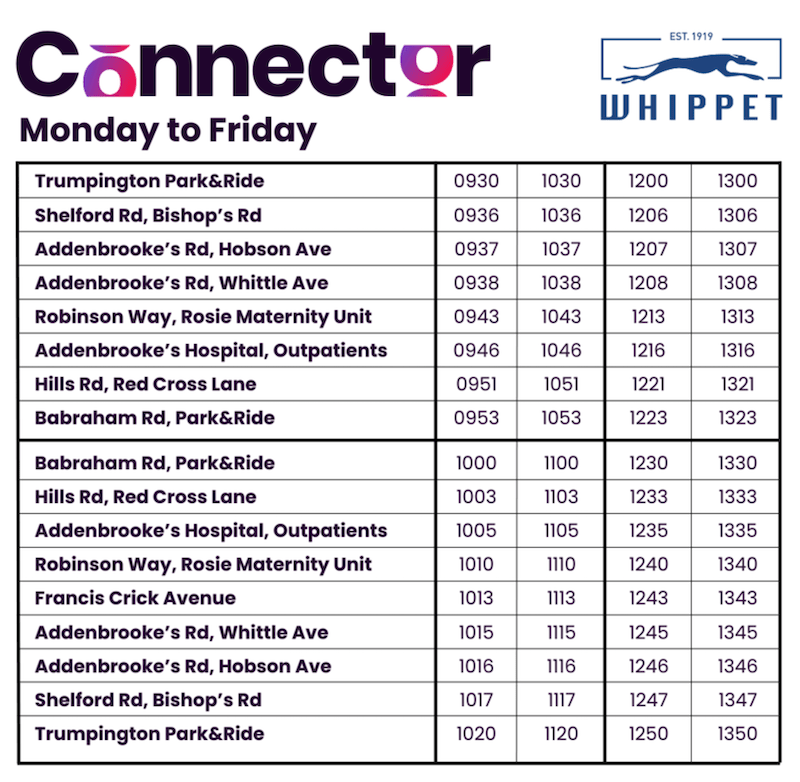 This latest Connector trial route runs between the Trumpington and Babraham Road Park & Ride sites in south Cambridge via the huge Cambridge Biomedial Campus site which includes Addenbrooke’s Hospital, the Royal Papworth Hospital, AstraZenica UK’s offices as well as many other medical, pharmaceutical and scientific businesses.