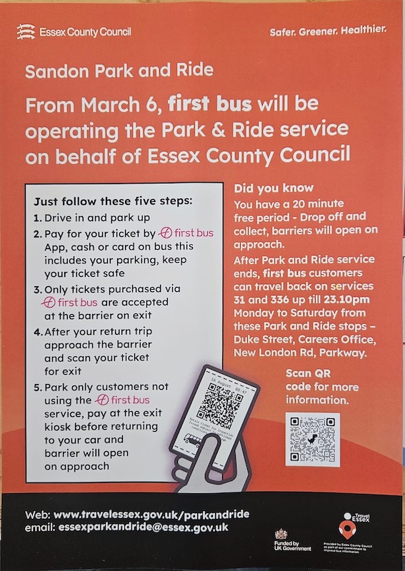 Despite knowing this, the County Council chose to ignore that commercial intention and awarded a four year contract to First Bus as well as another separate contract for the other Park & Ride site at Chelmer Valley, with both arrangements commencing yesterday. (Yes, I know, Friday is an unusual day for a new bus service contract to commence, but this is Essex.)