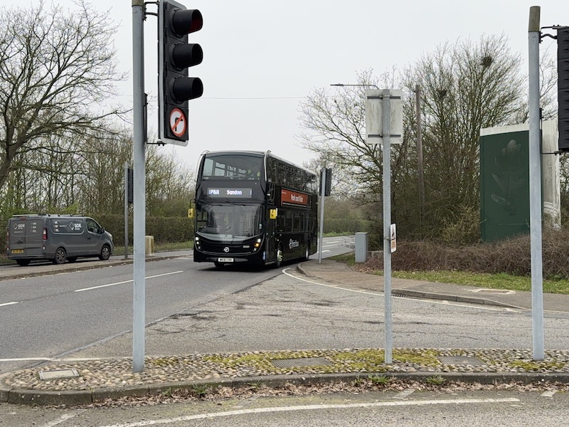 Normally buses pull up in, wait, and depart from, a lay-by on the A1022 Maldon Road immediately outside the Park & Ride site’s terminal building…