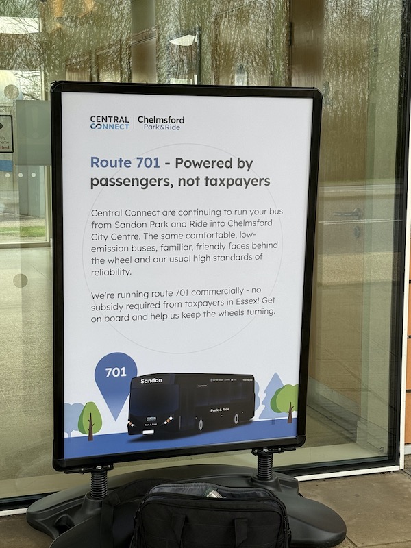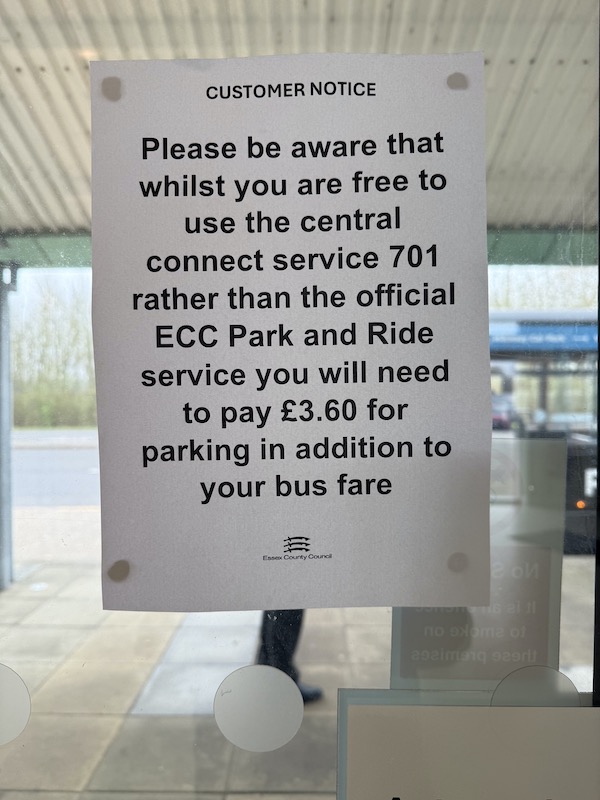 I popped over to Chelmsford’s Sandon Park & Ride site yesterday morning and frankly in all the years of witnessing competitive battles between bus companies, I’ve never seen anything quite like this, not least a local authority acting in this way.