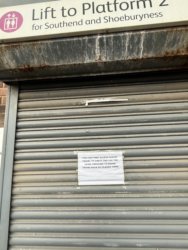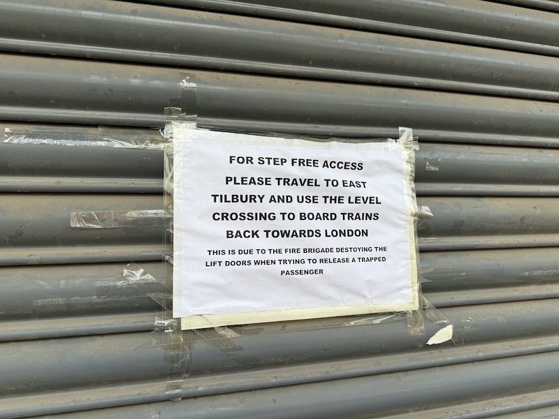However, having alighted from the Shoeburyness bound train on the eastbound platform, I had to cross over to the exit alongside the westbound platform which is helpfully connected by a footbridge and lifts. Except I felt sorry for those wanting to use the lift including young mothers with buggies as both the lifts were out of action…