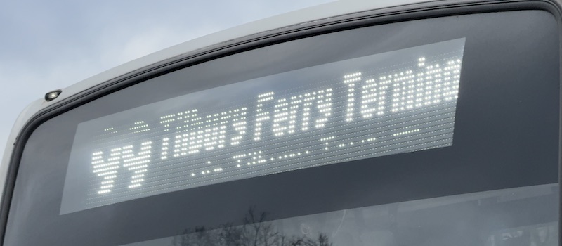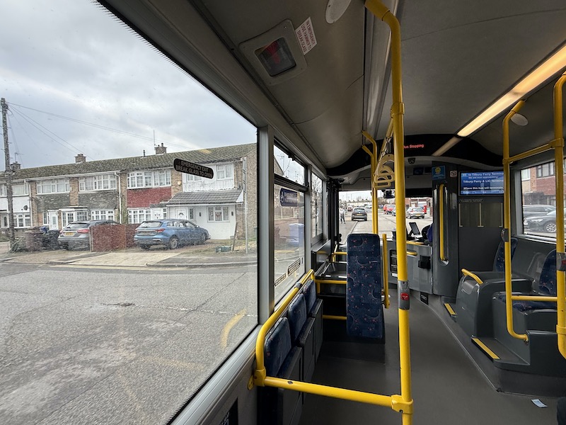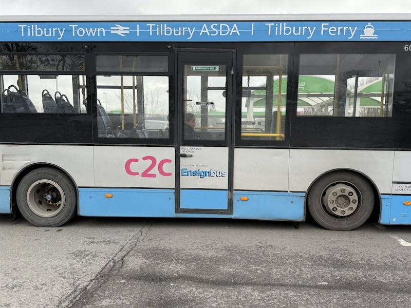 Thus this route 99 is therefore Britain’s original quirky Rail Replacement Parliamentary Bus Service. And because that requirement is enshrined under law, the funding for the route has been a financial liability for the contracting Train Operating Company, latterly c2c, although now DfT Operator Ltd following last July’s nationalisation of c2c. It’s why the c2c brand is prominently displayed on the bus – it’s that company paying for the service.