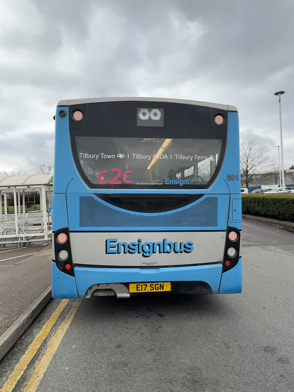 After last time’s wander across south east London I’m now north of the Thames, in Essex, enjoying a journey on Ensignbus operated route 99 in Tilbury.