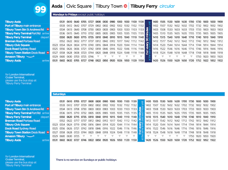 The relevance of all this to bus route 99, as was kindly explained to me by blog reader and industry veteran, John Pope who latterly worked for Thurrock Council, is when the section of line from Tilbury Town down to Tilbury Riverside closed in 1992 a legal requirement was added that a rail replacement shuttle bus must be provided to run at the frequency of the erstwhile rail service as a minimum and furthermore it was made a legal obligation that in the event of a desire to withdraw the bus route at any time in the future then a full closure procedure must be gone through as if it was a rail service.