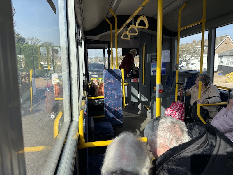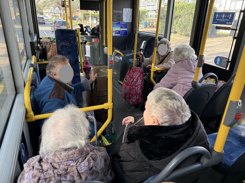 The chatting continued inside the bus and once again I found myself part of a weekly social event on a shopping bus journey of regulars and having to explain my presence.