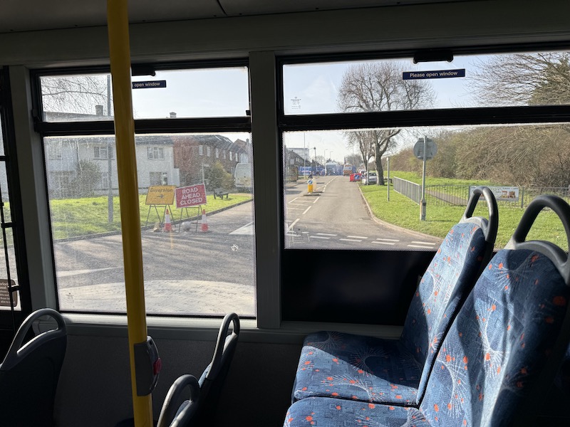We set off, making a full turn at the roundabout by Morrison’s and were soon turning off Oxhey Lane into the Carpenders Park residential area. The driver kindly helped one of the passengers off the bus who had a particularly heavy trolley (I can vouch for that, having lifted it on the bus for her) followed by another alighting at the next stop and two more at the top end of the residential area as we were about to rejoin Oxhey Lane.