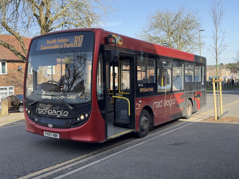 Another Red Eagle employee had been sitting at the back of the bus and he alighted at Bushey station leaving just me and one other passenger on board as we headed down the western side of the railway towards South Oxhey.