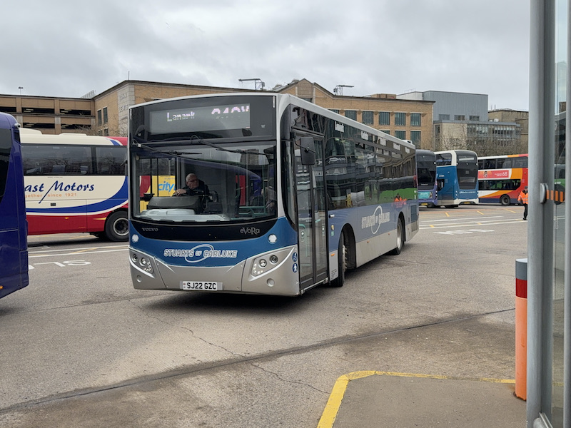 Also running on this inter-urban corridor is fellow independent, Stuart’s Coaches, with its (approximate) hourly route 240X between Lanark and Motherwell then fast to Glasgow…