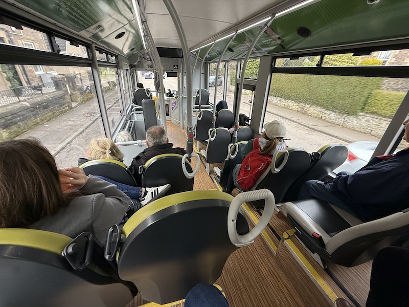The First Bus I travelled on heading towards Lanark carried around a dozen passengers between Motherwell and Wishaw (17 minutes), just three south of Wishaw, who all travelled for a couple of stops, and then no one for 10 minutes (see photo above) and only one passenger between Carluke and Lanark (15 minutes).