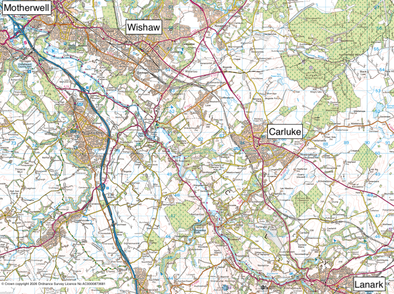 South of Wishaw and through Carluke to Lanark the route is more rural in nature and there are slim pickings.