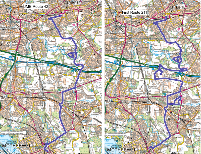 I think the 42’s more direct routing will help keep loyal passengers on much of the route as First has taken the opportunity to serve Maxim Park (a business park off the M8) leading to a more indirect route.