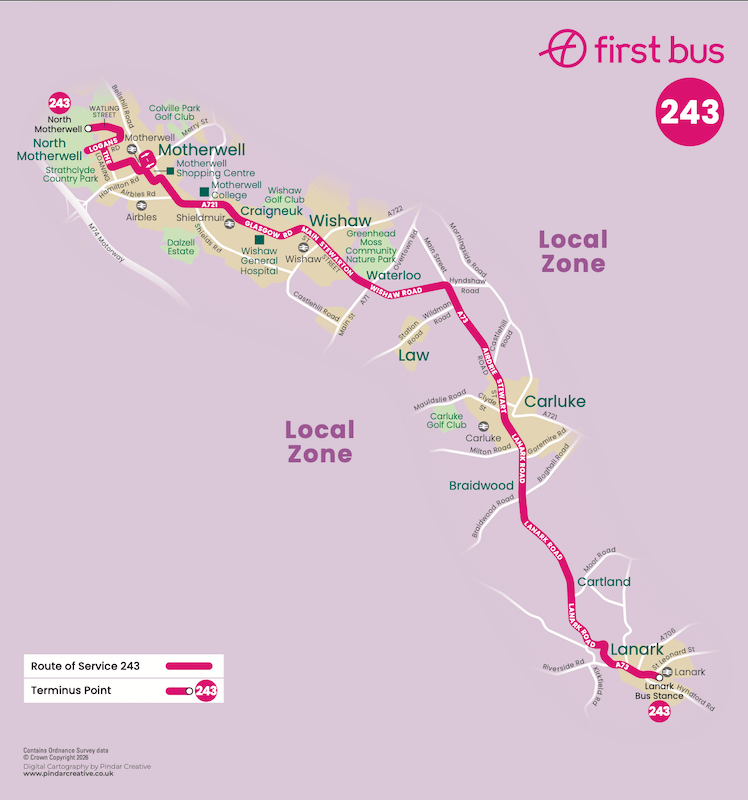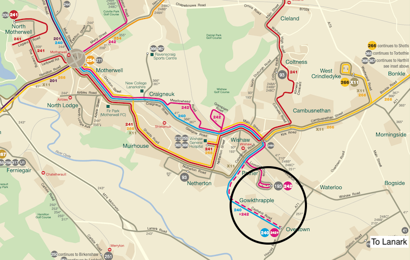 … but until Sunday, First Bus had shown no interest with its route 240 reaching only as far south as Overtown and route 242 to Pather, both located just beyond Wishaw.