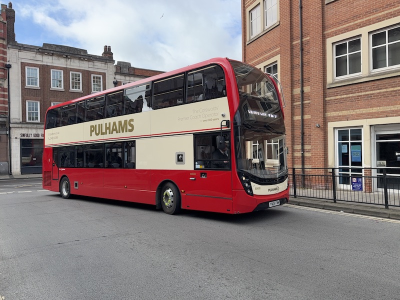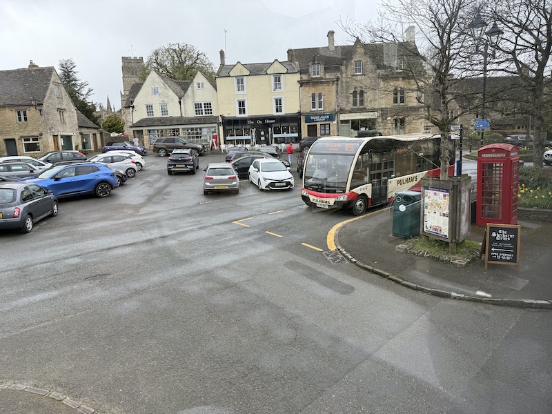 Personally I found the journey on the top deck more preferable than a single deck could offer – electric powered notwithstanding – as it’s a far more enjoyable way to savor the lovely Cotswolds scenery offered by the route. I understand electric double deck buses are due for imminent delivery to Pulhams and one of these will be allocated to the route.