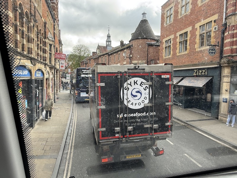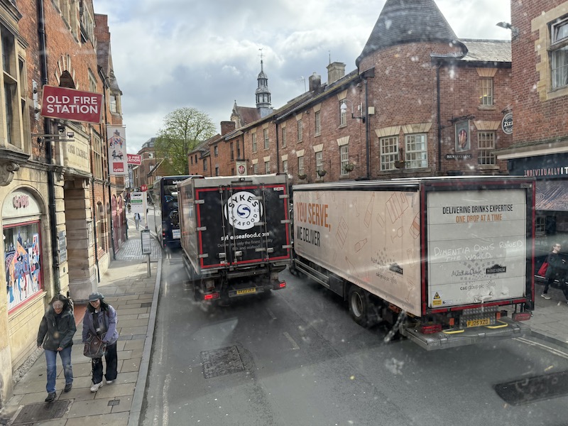 After a bit of a struggle to get along George Street, just outside the coach station due to a parked lorry where a Park & Ride bus was dropping off and picking up passengers, we reached the first stop round the corner in Magdalen Street four minutes down and picked up another seven passengers.