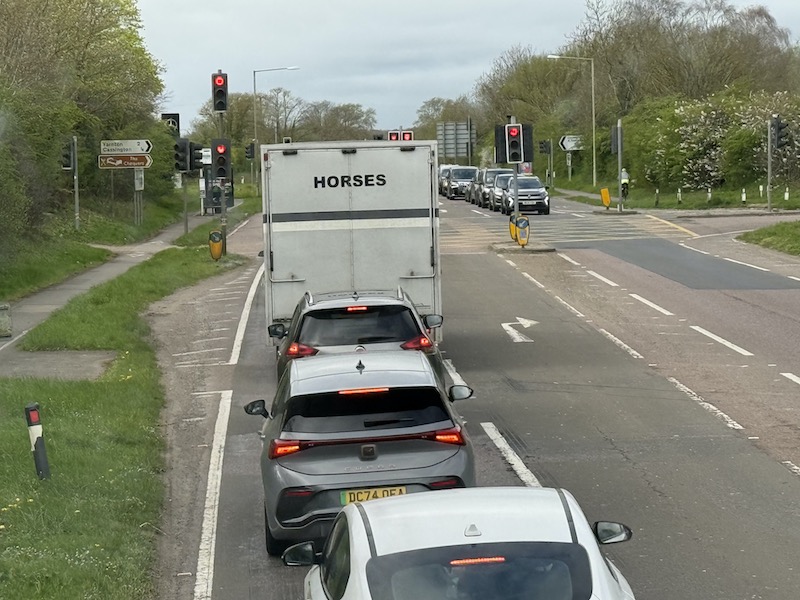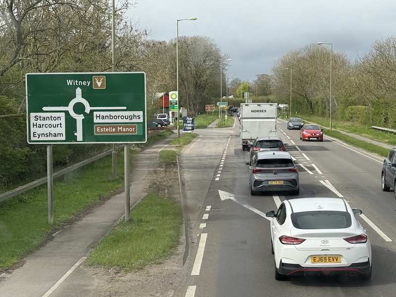 Sadly that doesn’t last long and once back down to single carriageway progress becomes slower particularly as we approach the tourist hot spot of Burford which is served by a bus stop on the A40 rather than use the narrow roads in the village itself.