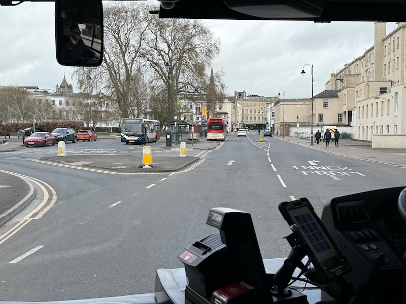 We stop three times entering the famous Spa town to set down passengers as well as some slow moving traffic (shown above) but most stay on board until we reach the Royal Well bus station where we arrive at 12:47 just shy of two hours since leaving Oxford and ten minutes late.