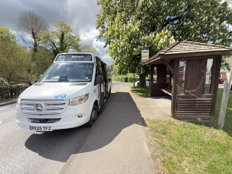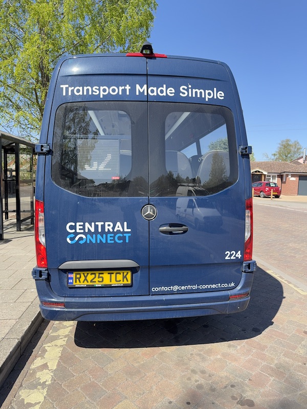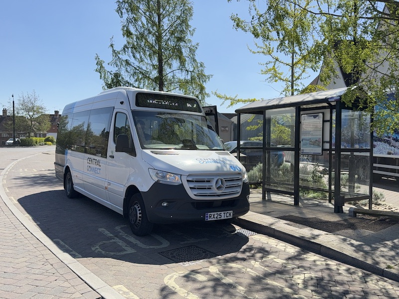 Operated by Central Connect for Hertfordshire County Council (HCC) using a one year old Mercedes Sprinter which I reckon is going to have to work hard to gather up enough passengers to make this new route worthwhile.