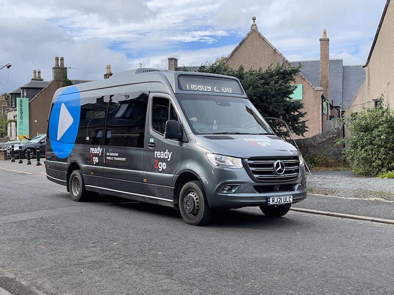 August 2021: Aberdeenshire Council introduced Ready2Go with five vehicles based on Inverurie operated by Watermill Coaches. It ended in April 2023 following pressure from local councillors and users to revert to conventional buses. The Council stated “a number of issues have been impacting the service including high running costs, relatively low numbers of passengers travelling at the same time on each bus and passengers being unable to book a bus journey. The recent Insch bus service survey indicated, on balance, a preference in that area for a timetabled service over Ready2Go with customers noting a deterioration in Ready2Go service reliability in more recent months as demand has increased across the service area.”